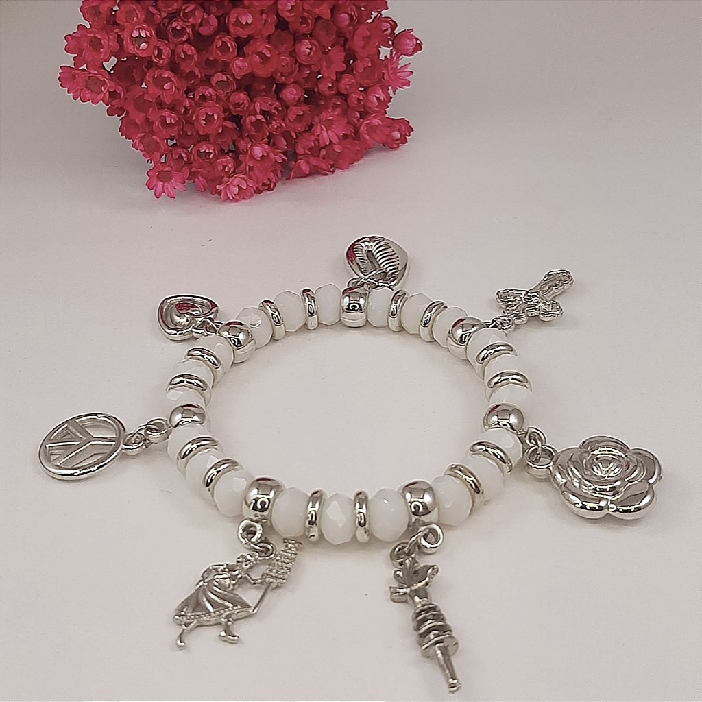 Pulseira Berloqueira para Oxalá com cristais de vidro, e 7 pingentes.