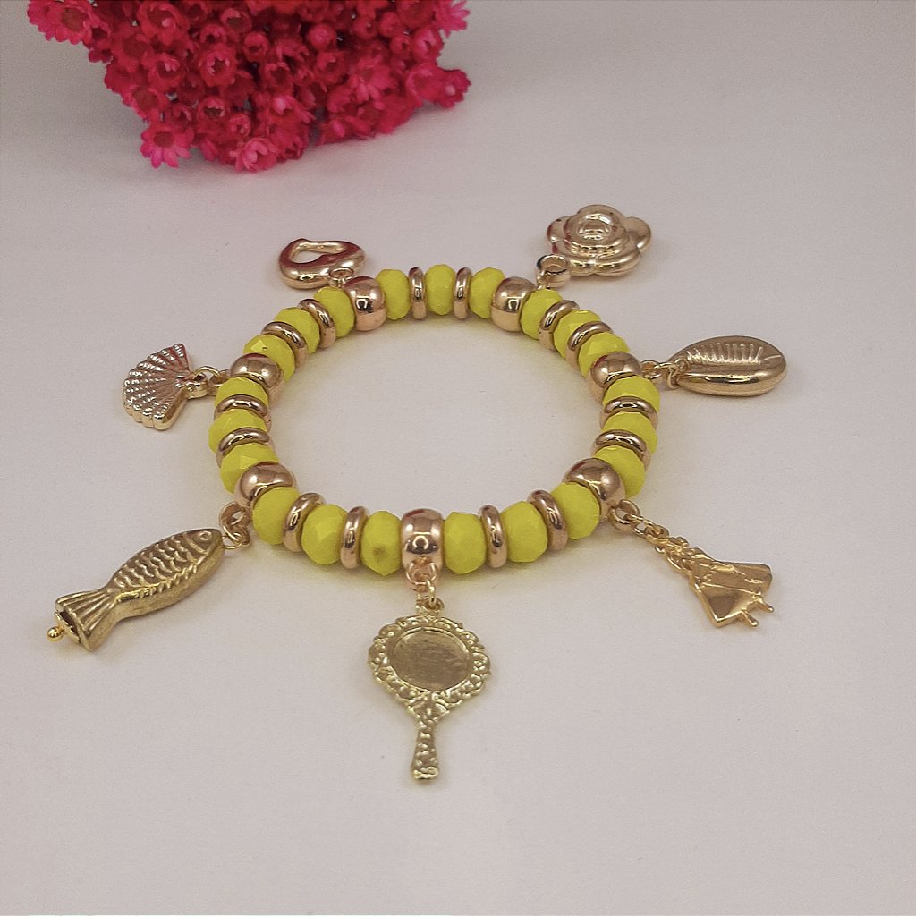 Pulseira Berloqueira para Oxum com cristais de vidro, e 7 pingentes.